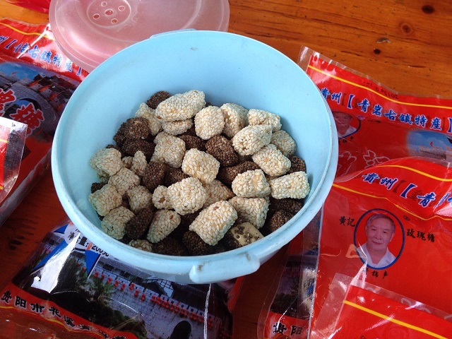 安顺青岩麻片糖,原名“玫瑰糖”,问世已有一百多年的历史,据说最早的玫瑰糖是在1874年,青岩人用玫瑰花、红砂糖、糯米、小麦、芝麻、核桃仁、红砂糖制成条状或块状,闻着芳香,吃着酥脆。