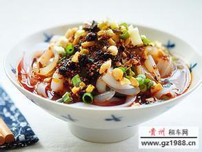 油红香辣,凉滑爽口。适合于小伙伴食用。好多吃货开始流口水了吧!那还犹豫什么,到安顺租车网包个车和小伙伴去安顺享受美味的小吃及多彩的 风光吧。来吧,任性一把:租车去安顺吃豌豆凉粉去了。