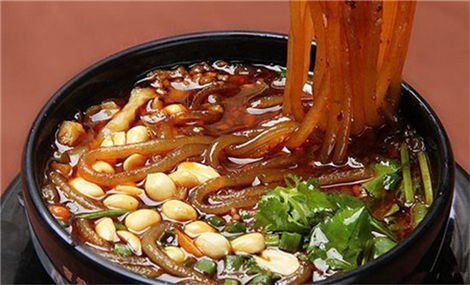 安顺市街头时常看到有人端着一次性快餐盒边走边吃,走近一看原来是安顺酸辣粉,吃的人一嘴红油,让人着实眼馋,是一种人人喜爱的街边小吃