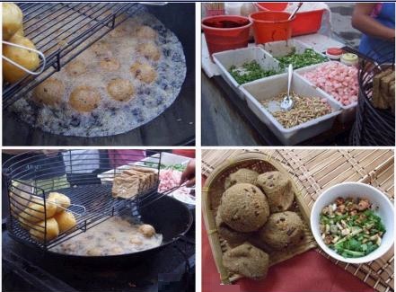 安顺的豆腐圆子既是风味小吃,也可以说是黔味菜肴中的一道特色名菜,在安顺最出名的就要数雷家豆腐圆子了,虽然在安顺街头到处挂着正宗雷家豆腐圆子招牌,要是稍稍了解一点安顺雷家豆腐圆子的人都知道,不管他说得多么热闹,只要一看豆腐圆子的外形就可知道是不是正宗的雷家豆腐圆子或者说至少看出和雷家豆腐圆子有没有关系,因为正宗的雷家豆腐圆子外形不是球圆形而有点椭圆形,由于几次看到雷家豆腐圆子想拍一张图片实在不太容易,还没炸成几个就被食客端走了,因此下面的图片就不是真正的雷家豆腐圆子,不过安顺人也不太在乎是不是正宗的,有的吃就行了。而且市面上炸好的和没炸好的豆腐圆子到处都有得卖,自己回家再加工一下即可品尝到风味小吃豆腐圆子。当然全程自己制作加工也是可行的。不过正不正宗就得另说了。