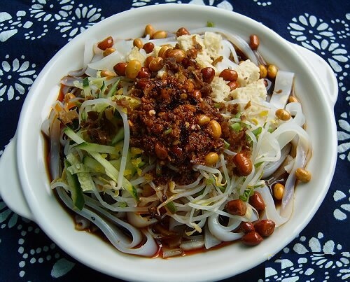 安顺绿豆香辣粉皮风味特点:油红香辣,细嫩爽滑,消暑降燥。适合于小伙伴食用。好多吃货开始流口水了吧!那还犹豫什么,到安顺租车网包个车和小伙伴去安顺享受美味的小吃及多彩的 风光吧。来吧,任性一把:租车去贵阳青岩吃安顺绿豆香辣粉皮去了。