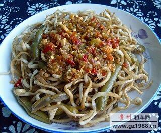 健康提示:铜仁尖椒豆角凉面特点:面菜合一,面脆豆嫩,香辣爽口。适合于小伙伴食用。好多吃货开始流口水了吧!那还犹豫什么,到安顺租车网包个车和小伙伴去安顺享受美味的小吃及多彩的 风光吧。来吧,任性一把:租车去铜仁吃尖椒豆角凉面去了。