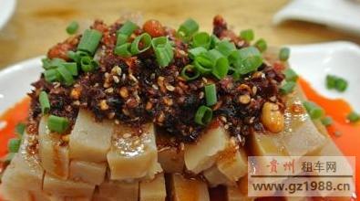 凯里三穗灰碱粑辅料:熟猪肉末25克,食盐1克,红油辣椒15克,葱花5克,酱油5克,味精1克,骨头汤150毫升