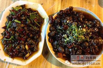 安顺炒螺蛳是在安顺的夜市上比较受欢迎的特色小吃之一,吃这种小吃一定要有耐性,吃的时候要用牙签慢慢的把螺蛳肉挑出来品味,也有人吃这美味吃出水平来,只见拿起螺蛳用嘴一嘬,一个螺蛳肉就进嘴了,再喝上一口啤酒,那滋味真是过瘾,想起来口水都要掉下来了,只要去夜市是一定要来上一盘两盘的就着小酒吃得美美的。偶然在市场上有人卖鲜活螺蛳就要买他两斤自己做,一次就吃个够,可比在夜市上吃实惠得多了,也不麻烦。