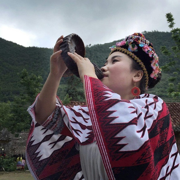 新驰苗族服饰,被誉为“穿在身上的史书”,独具特色,它向人们倾诉着这支苗族历史上迁徙的沧桑岁月。主要由礼服(披肩)、被肩、吊旗、袖子、内衬、肩带、腰带6部分组成,衣料颜色主要以红、白、青为主,红代表男性,青代表女性。