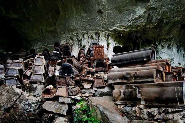 棺葬洞位于桃花湖村的一峭壁上,是一巨大的岩溶洞,附近岩山森林植被完好,洞口老树古藤,林木叠翠,形成一道天然绿色屏障,从下仰视,隐约可见洞口棺材密布,多不可数,古老而神秘,蔚为奇观。经测量,此洞最高点距地面10余米,洞深近40米,宽约24米,洞顶最高点为15米,有一条陡峭的山路蜿蜒曲折至洞口。洞内棺材属桃花村所居的刘姓苗民,棺葬洞设有石墙木门,钥匙由刘姓族人保管,非经同意外人不得入内。棺葬洞地势较高,洞内干燥,通风良好,为棺材置放和保存提供了良好的条件。现存完好的各种形制棺木540多具,随葬器物百余件。据中科院地化所探测,桃花村棺葬洞启用于唐肃宗至德年间,距今已有1280多年。此棺葬洞被评为省级文物保护单位。