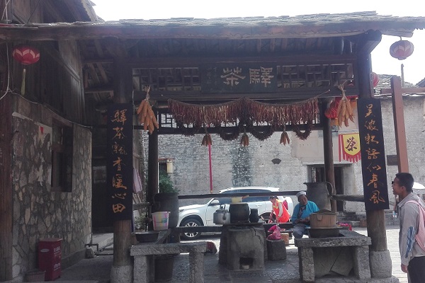 天龙镇,是安顺民俗旅游胜地之一,天龙镇曾是明太祖朱元璋军队迁徒屯兵之地,至今仍保持古扑厚重的明代遗风古俗。这里的天龙地戏演绎的是600年前杨家将、穆桂英等故事。戏剧粗犷、独特,耐人寻味,被世人和专业人士称为:“戏剧活化石”。演员头戴木雕傩戏脸壳,面遮黑纱,身穿长衫,肩插令旗,手持刀棍,或群舞或单搏,透露出英勇顽强与善战克敌的精神。