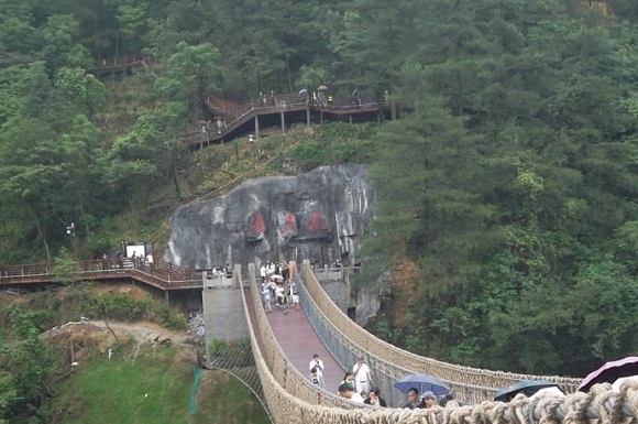 毛泽东填有《忆秦娥·娄山关》词一首,描写红军指战员英勇鏖战的壮烈情景。现以行草手书体放大镌于高14米,宽25米的大理石碑上,益增雄关声色。