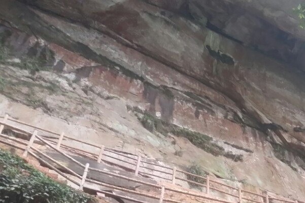 佛光岩景区出露地层全是侏罗纪、白垩纪河湖相红色沉积岩。