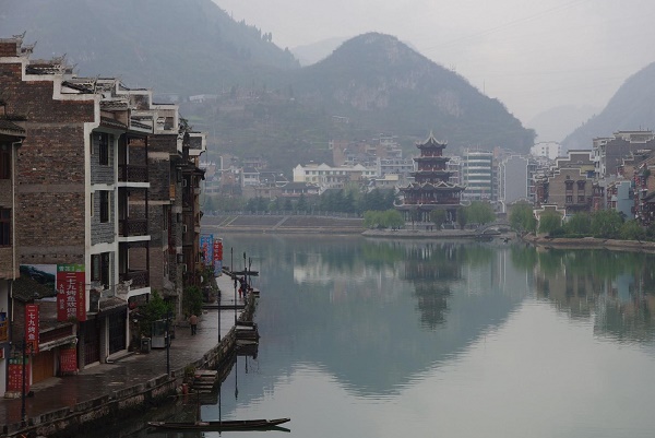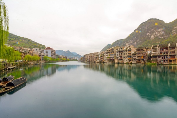 镇远古镇位于黔东南周镇远县,舞阳河畔,河水蜿蜒着以“S”形穿城而过,形成一个类似太极图的样式,故又称八卦古镇。每年夏天,周边的游人纷纷聚集于此,热闹非凡,但夏季一过,则归于平淡。