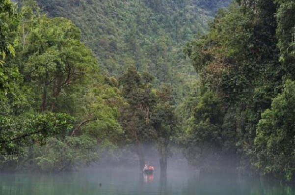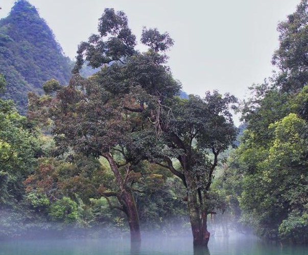 鸳鸯湖是一个天然的喀斯特高原湖,划船入内仔细观察,这里的树木植根于水中的石头,又透过石头扎根于河床。