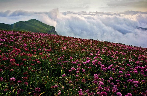 韭菜坪景区的主峰是安顺最高峰,这里是欣赏韭菜花和登山赏景的好地点。