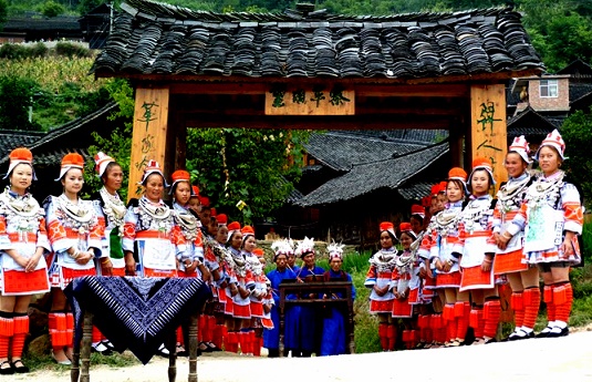 革家,黄平土著民族之一,约2万余人。据考,革家先民是古僚族支系,现完整地保留了古僚族的"椎髻斑衣""穿中而贯其首"等特征。革家人千百年来崇拜太阳,供奉弓箭,身着铠甲式服饰,崇尚武功,祭祀祖鼓,据传为"羿的后人"。他们至今仍然完整地保存着祖先沿袭下来的氏族制度和传统文化,有自己的民族语言,有自己考究的婚丧嫁娶和祭祀礼仪,有自己独特的民族歌舞和精湛的民族工艺技术。