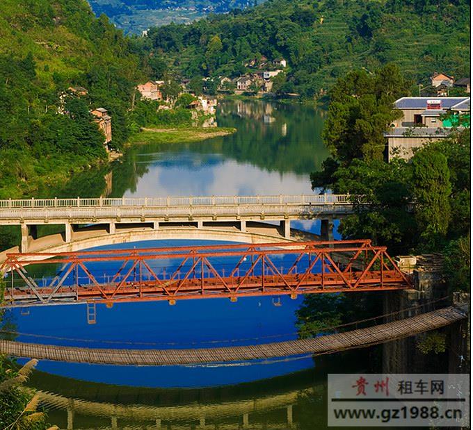 位于安顺市的凯里市与黄平县交界处,重安镇南边的江面上,近距离地并列着三座桥。由于它们分别建于三个不同的历史时期,因而也有着“三朝桥”之美称。