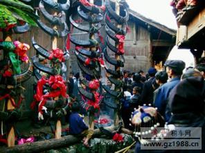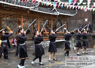 反排木鼓舞 有着鼓声节奏强烈、舞姿豪放粗犷的特点,人们赠以“东方迪斯科”的美称。