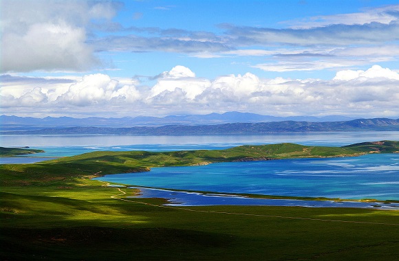 中国最大的内陆咸水湖,面积4,573平方公里,湖面高出海平面3,260米,是泰山顶峰的2倍。湖水最深处为32米。湖中有鸟岛(海西山、海心山,海西皮),三槐石和沙岛。可供游客游览。陈运和诗《青海湖》描写“始终流不出内陆的壮怀踪影,映入日月山眼帘,属于一种水天空旷的雄浑气概”。鸟岛在青海湖的西部,面积约1平方公里每年春季有约10万只从中国南方和东南亚以及印度半岛飞来的十多种候鸟在这里繁衍生息甚为壮观,其集群繁殖密度之大,为亚洲罕见。