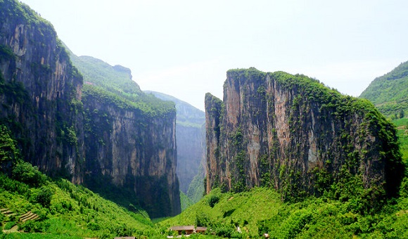 奉节天坑地缝位于重庆奉节县南部山区,主要景点有天井峡地缝、一线天、 从瞿塘关看夔门 从瞿塘关看夔门 小寨天坑、旱夔门等。2014年4月,成为国家“4A”级旅游景区。