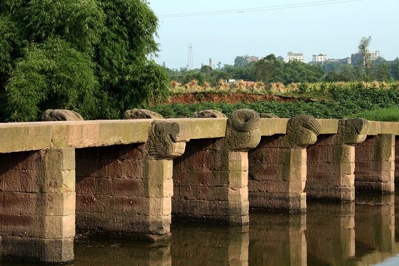 国家重点文物保护单位,泸县龙脑桥位于县城福集镇以北的大田乡境,距泸隆公路1.5公里,横跨于蜿蜒曲折的九曲河上。该桥始建于明代洪武(1368—1398)年间,至今已有600多年的历史。中央电视台于1991年在《中国桥》专题栏目中向全国和世界推崇过龙脑桥,其雄姿已载入中国古桥画册,名传中外。该桥是中国古桥中建造工程浩大,雕刻十分精美,造型生动别致,工艺精湛,艺术品位高,至今保存完好的全国罕见的古桥。它早已是四川省重点文物保护单位。1996年10月,被国务院定为全国文物保护单位。龙脑桥是一座集建筑造型和石雕艺术于一体的古石桥。桥为石墩石梁式平板石桥,全长55米,高约2米,宽1.9米,整桥共15跨(含桥头堡各一跨在内),桥墩14座,桥墩由四层灰沙岩石条垒砌而成。每块条石长3.10米,宽0.8米。其最大桥墩(即最大龙体)整石重约13.6吨,最上一块墩石中部凿成凹型,以便在上面安放石板作梁。桥墩朝上游一端凿成分水架势,以减少洪水冲击力。桥梁石板共30块,每块长不少于3.6米,宽0.95米,厚0.6米。其中最长桥板(3.85米×0.95米×0.6米)单重为5.9吨。