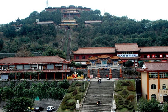 蓬莱公园,1998年之前名为魁山寺,“魁”字高5米,宽4米,字形正楷,阴形、笔划最深为4公分,最大笔划横面为40公分。大英建县后自1998年至2003年,共投入资金650万元,完成了环山道路、前门广场、公园大门、绿化、路灯等配套建设,公园面积49.78万平方米,公园绿化面积占总面积的80%。
