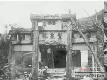 圣泉,又名百盈泉、灵泉、漏汋泉,地址在安顺黔灵湖之北小阜上。为著名的间歇泉,是安顺开辟最早的名胜,在全国也享有一定的声誉。据弘治 《安顺图经新志》 记载:圣泉为明初洪武年间镇远侯顾成所辟。志文云:“圣泉在治城西五里,水自山麓涌出,消长不一。镇远侯顾成甃石为池,覆以亭,池中置一石鼓,以验消长。其流溉田数百亩。亭侧有观音堂,郡人岁时游观焉。”